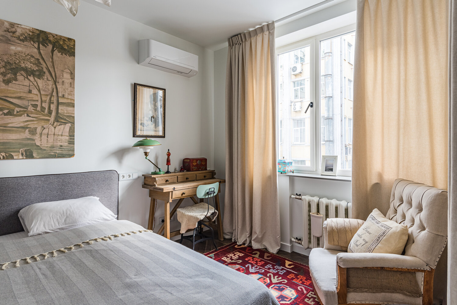 Фотография: Спальня в стиле Скандинавский, Эклектика, Современный, Квартира, Проект дня, Москва, 3 комнаты, 40-60 метров, Индивидуальный проект, Александра Ознобищева – фото на INMYROOM