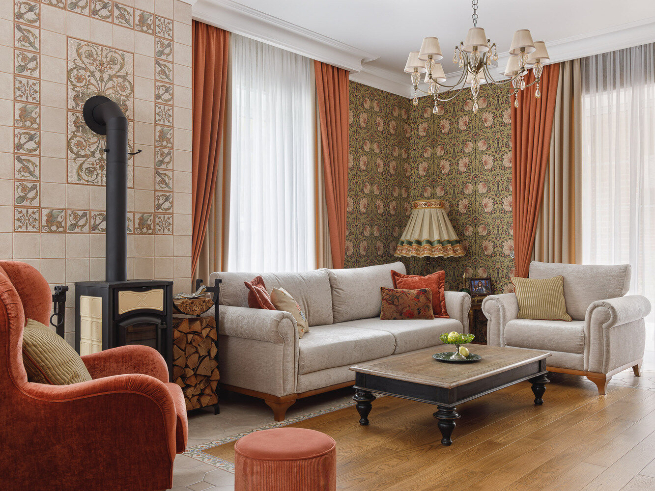 Фотография: Гостиная в стиле Классический, Восточный, Эклектика, Дом, Проект дня, Дом и дача, Татарстан, Кирпичный дом, 4 и больше, Более 90 метров, современный с элементами классики и роскоши, Зарина Гайворонская – фото на INMYROOM