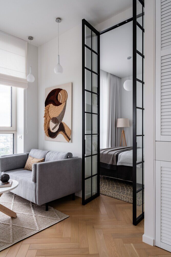 Фотография: Спальня в стиле Скандинавский, Современный, Малогабаритная квартира, Квартира, Проект дня, Москва, 2 комнаты, до 40 метров, Александра Лаврова – фото на INMYROOM