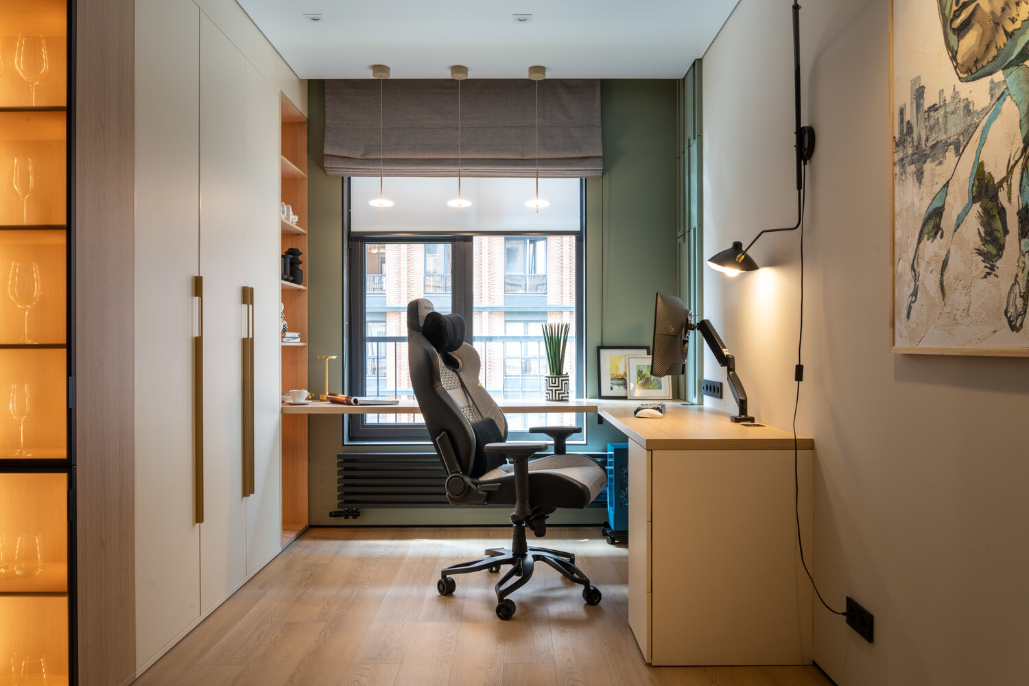 Фотография: Кабинет в стиле Современный, Малогабаритная квартира, Квартира, Проект дня, 1 комната, Монолитно-кирпичный, Юлия Волкова – фото на INMYROOM