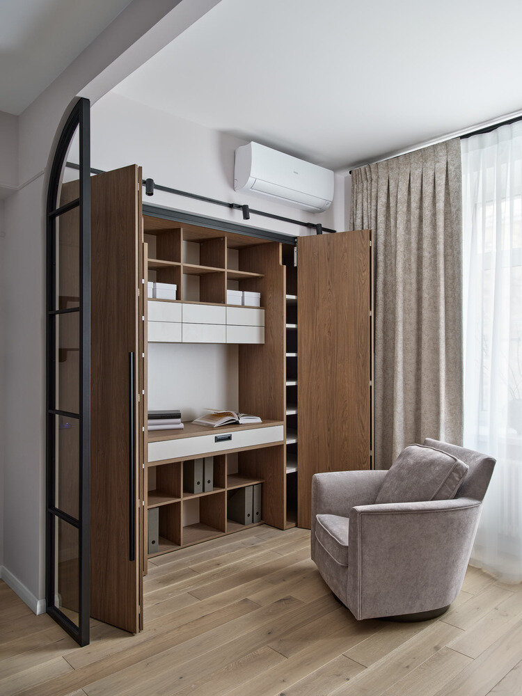 Фотография: Кабинет в стиле Современный, Квартира, Проект дня, Москва, Сталинка, 3 комнаты, Более 90 метров, Анастасия Уфимцева – фото на INMYROOM