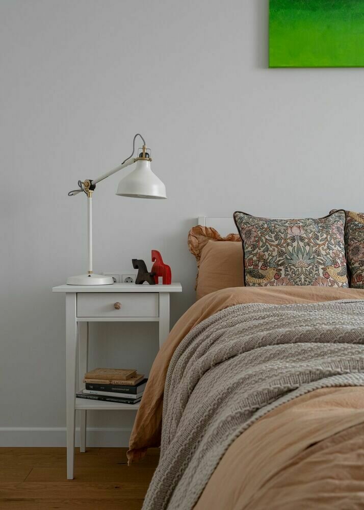 Фотография: Спальня в стиле Скандинавский, Современный, Минимализм, Квартира, Проект дня, Москва, Сталинка, 2 комнаты, 40-60 метров, Вера Конакова – фото на INMYROOM