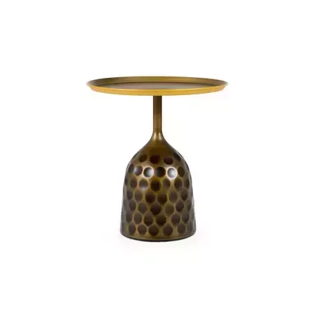 Изящный столик Estetulu имеет стильный дизайн и детализированное исполнение. Отличается долговечной конструкцией из металла. Дизайн вдохновлен формой перевернутого бокала. Основание-«колокольчик» грациозно поддерживает круглую столешницу. Рельефные углубления на металле придают динамичность, эффектность.