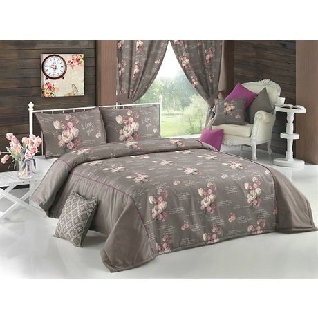 Комплект для спальни: покрывало + наволочка "тюльпаны и шоколад"